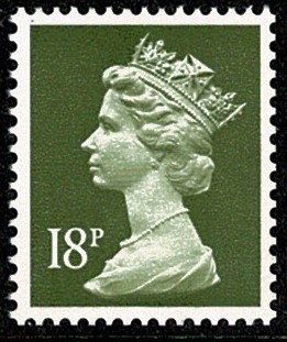 18p Yellowish Olive FCP/PVAD. MISSING PHOSPHOR. 50p MCC booklet No.3. SG X912y Spec. U258c.